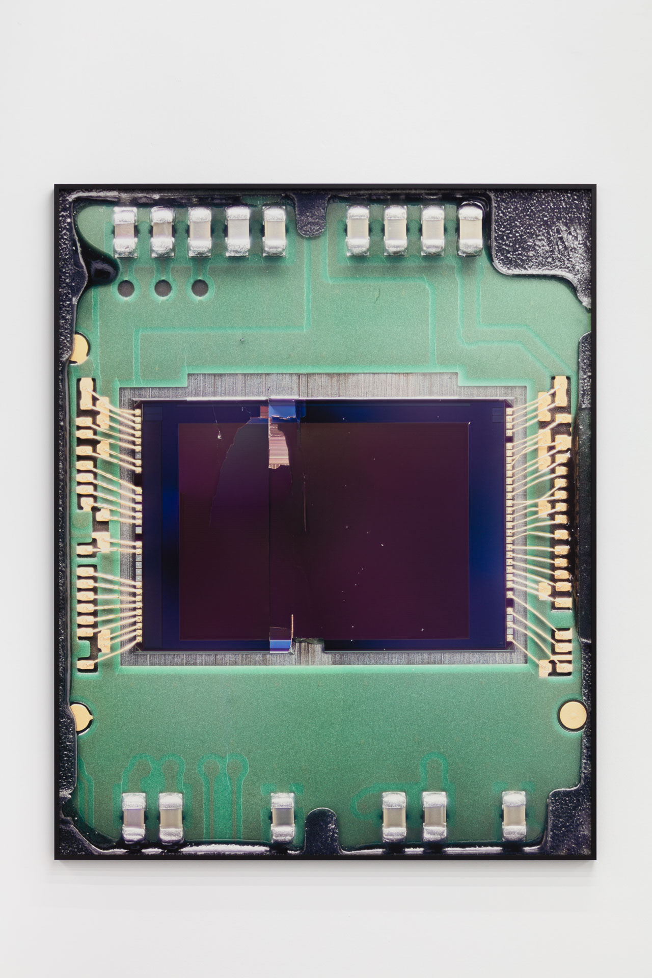 Die Serie »Sensor of Impact« zeigt defekte Kamerasensoren aus Smartphones. Obwohl wir diese winzigen Hightech-Produkte fast täglich nutzen, sind uns weder ihre Funktionsweise noch ihre Ästhetik bewusst. Jedes einzelne Bild der Serie setzt sich aus mehreren hundert Einzelaufnahmen zusammen. Dadurch wird nicht nur die fragile Technologie, sondern auch die Spuren von Beschädigungen, denen die Sensoren ausgesetzt waren, sichtbar.