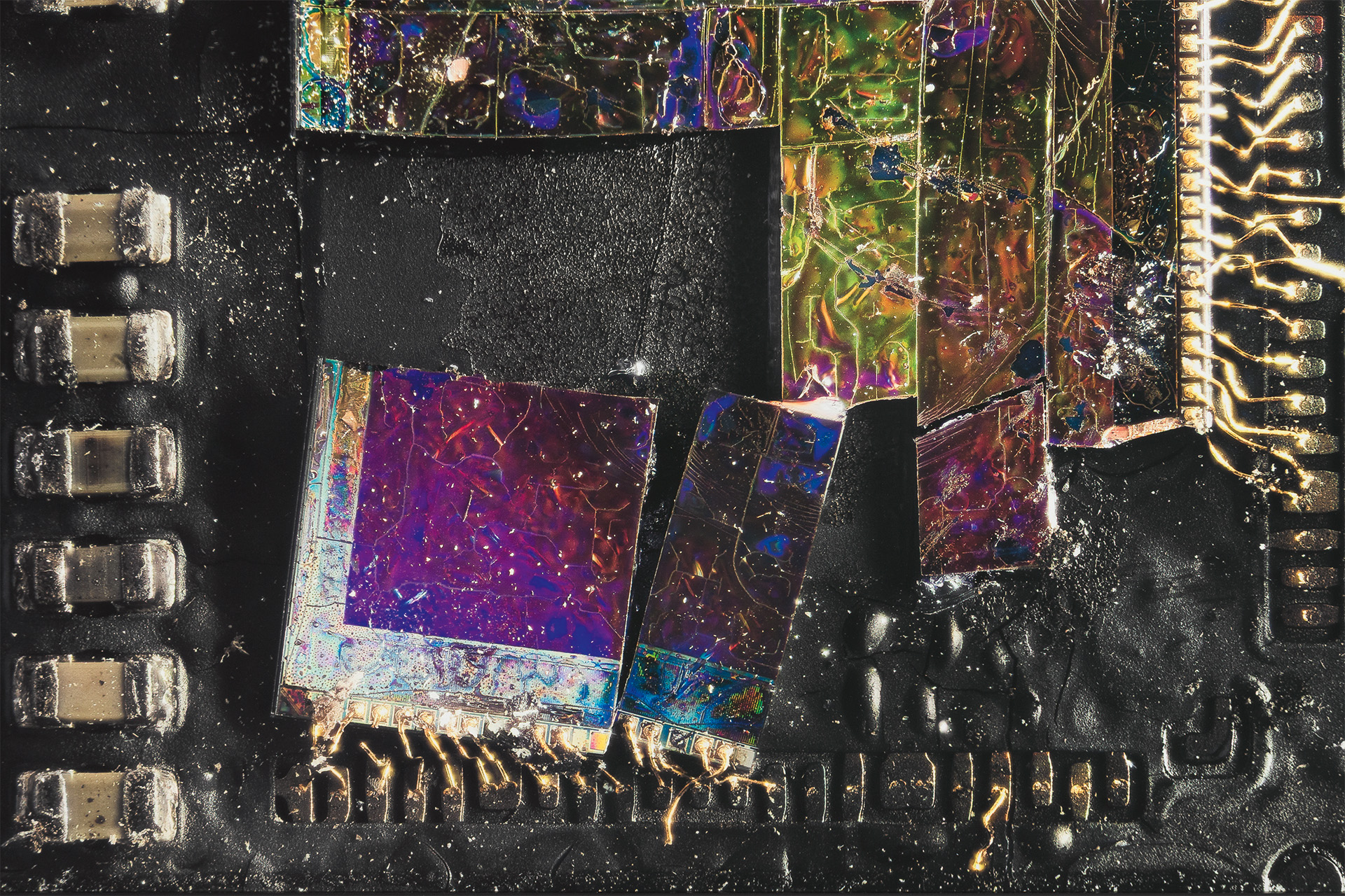 Die Serie »Sensor of Impact« zeigt defekte Kamerasensoren aus Smartphones. Obwohl wir diese winzigen Hightech-Produkte fast täglich nutzen, sind uns weder ihre Funktionsweise noch ihre Ästhetik bewusst. Jedes einzelne Bild der Serie setzt sich aus mehreren hundert Einzelaufnahmen zusammen. Dadurch wird nicht nur die fragile Technologie, sondern auch die Spuren von Beschädigungen, denen die Sensoren ausgesetzt waren, sichtbar.